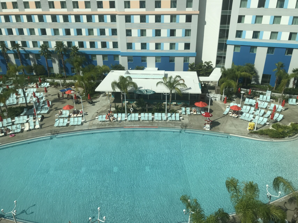 Generally unheard of, but yes, at Universal Orlando, most hotels get to pool hop at other resorts. While its not probably something most people would find convenient, it might actually make sense while staying at Aventura. If we are being honest, Aventura has a typical standard hotel pool in comparison to several other properties. Sapphire Falls pool is just across the parking lot, and in my opinion, is the best pool on property. Yes, absolutely, pack your pool bag and head on over. You can stop at the lobby and get a day pass for the pool, it will provide you with a room key, that will open the gates in the pool area.