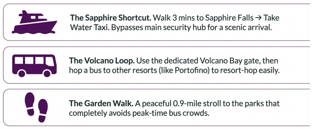 - Resort to resort access utilizing the volcano bay buses